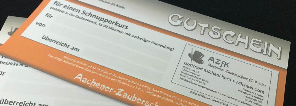 (Wertgutschein, anrechenbar auf alle Kurse und Workshops der Aachener Zauberschule)